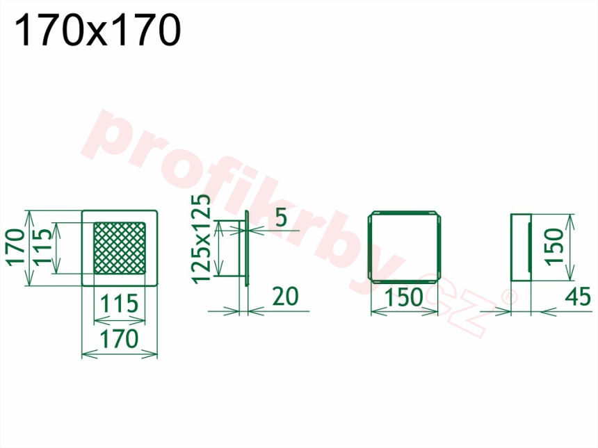 | Rozměr mřížky ( venkovní rozměr rámečku) (mm) | 170x170 mm |