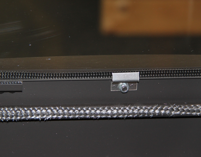 Držák skla krbových kamen Falun, Borgholm servis THORMA Filakovo - Profikrby s.r.o. Blansko - Falun, Borgholm -  přítlačný plíšek pro sklo s maticí a podložkou