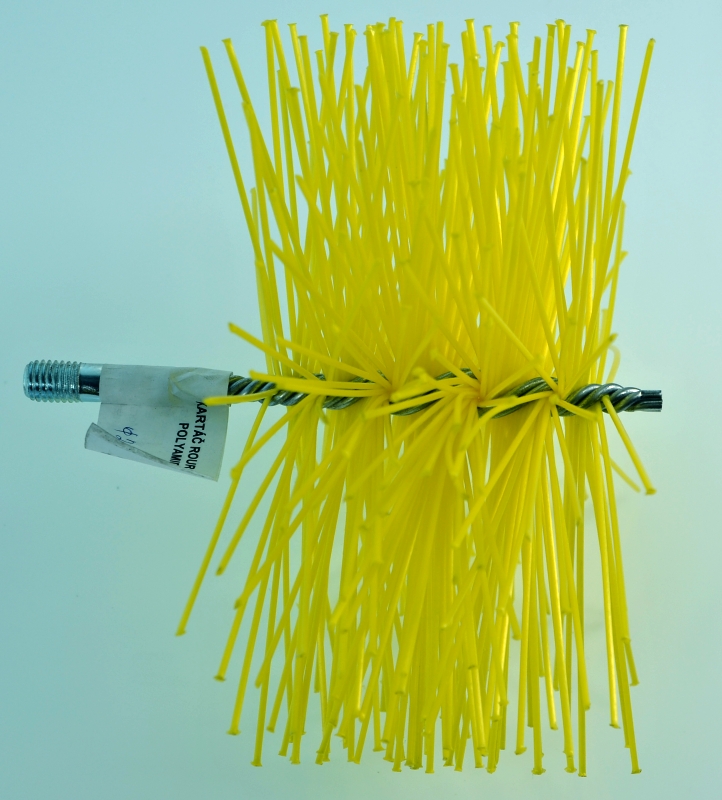 Polyamidový kartáč je vhodný pro komíny průměru 120 mm. Nasazuje se na lanové nástavce v bužírce, aby při čištění nerezových vložek a nerezových komínů nedošlo k poškození nerezových stěn ocelovým lanem.