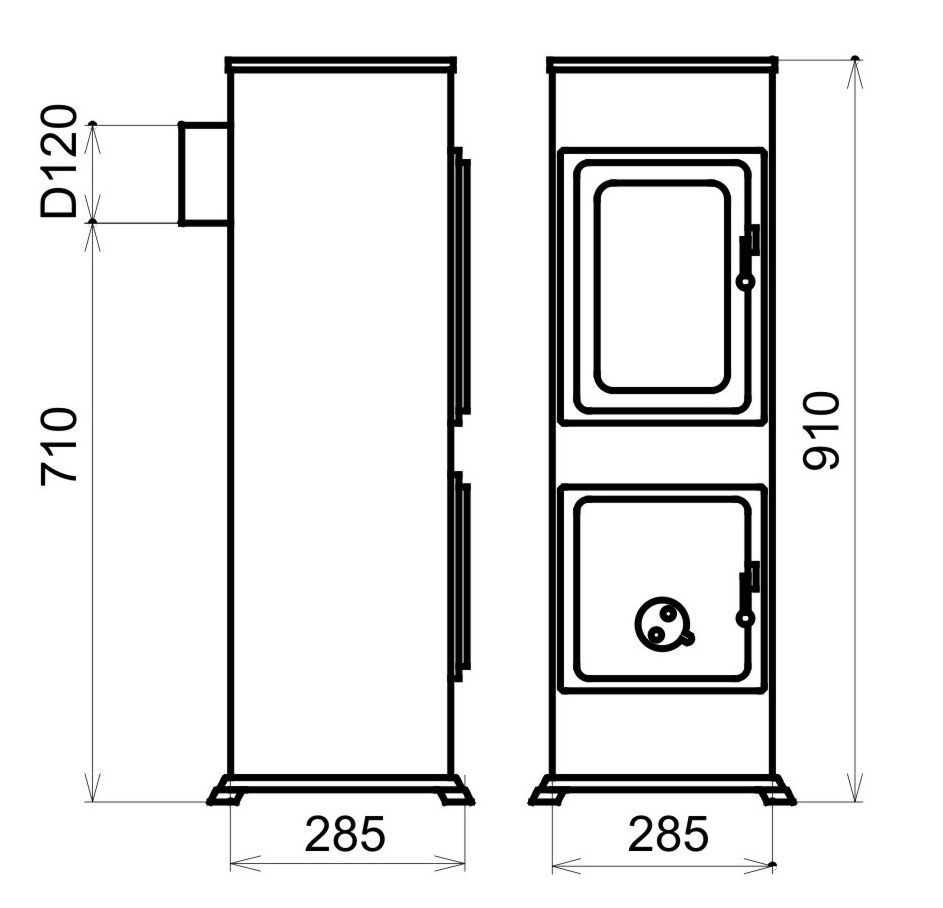 | Bezpečná vzdálenost od hořlavých stavebních konstrukcí a nábytku před dvířky | 800 mm |