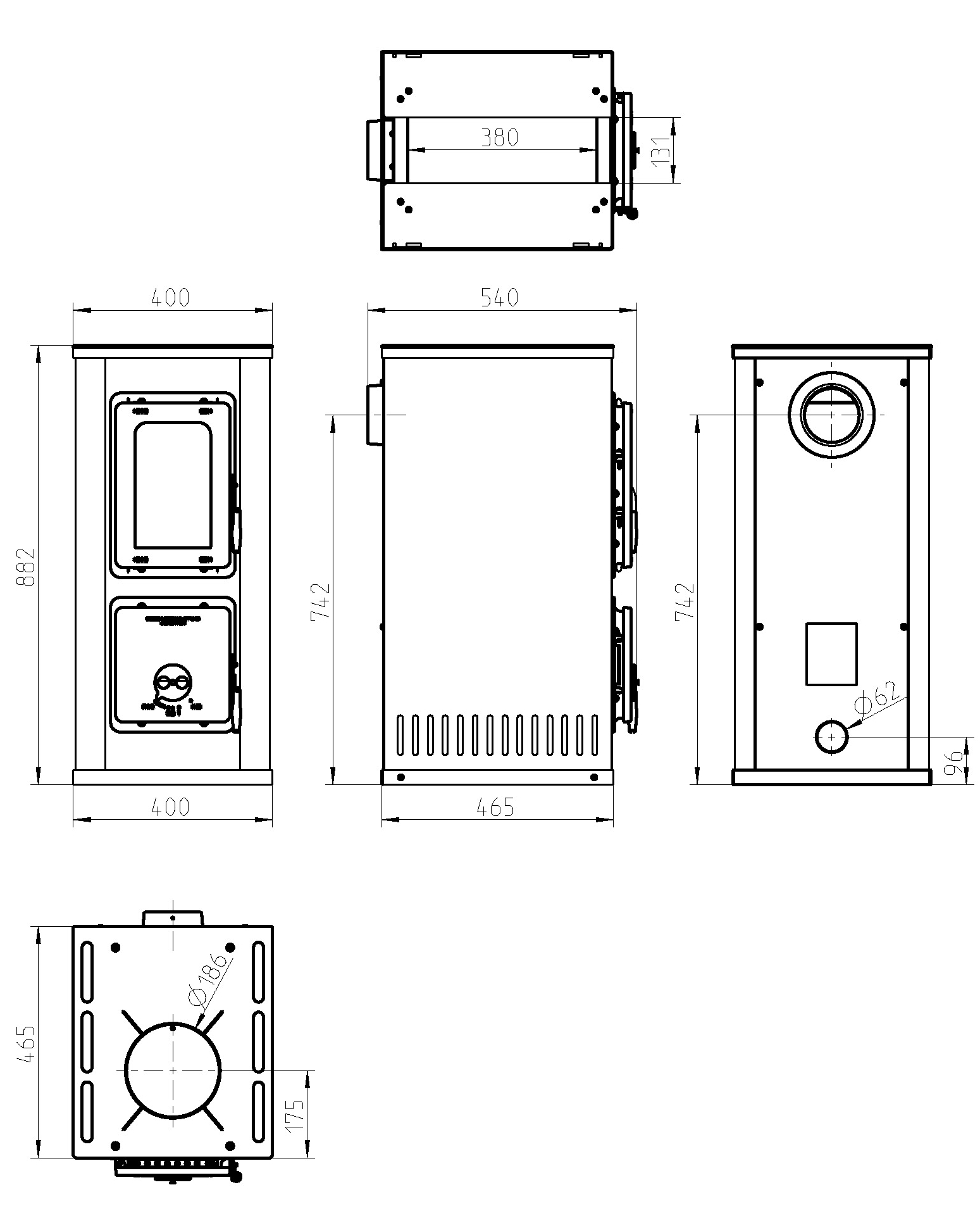 Bezpečná vzdálenost od hořlavých stavebních konstrukcí a nábytku na bocích | 550 mm |