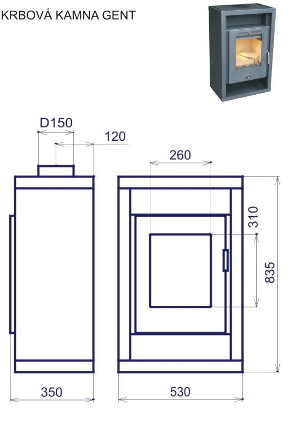 Kamna GENT Jsou vyrobená z ocelového žáruodolného plechu, zevnitř vyplněná šamotovými tvarovkami. Ve spodní části spalovacího