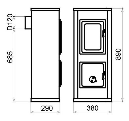 Přikládací a popelníkové dveře jsou z velmi odolné litiny, upravené odolnou barvou proti teplu a otěru.
