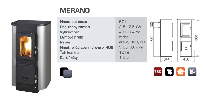 | Spotřeba paliva - drevo | 1,95 kg/hod |