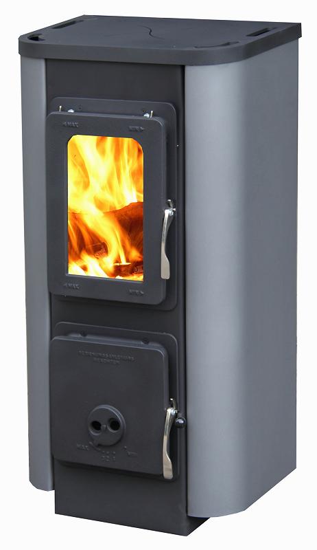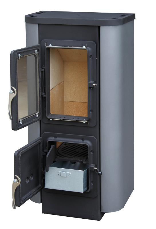 Přikládací a popelníkové dveře jsou z velmi odolné litiny, upravené odolnou barvou proti teplu a otěru.