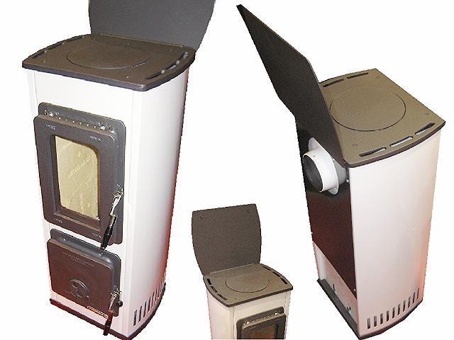 Přiklápěcí plotýnka uzavírá otvory druhého pláště a prodlužuje dobu hoření, kamna předávají teplo okolí sáláním. tento způsob topení stabilizuje topení.
