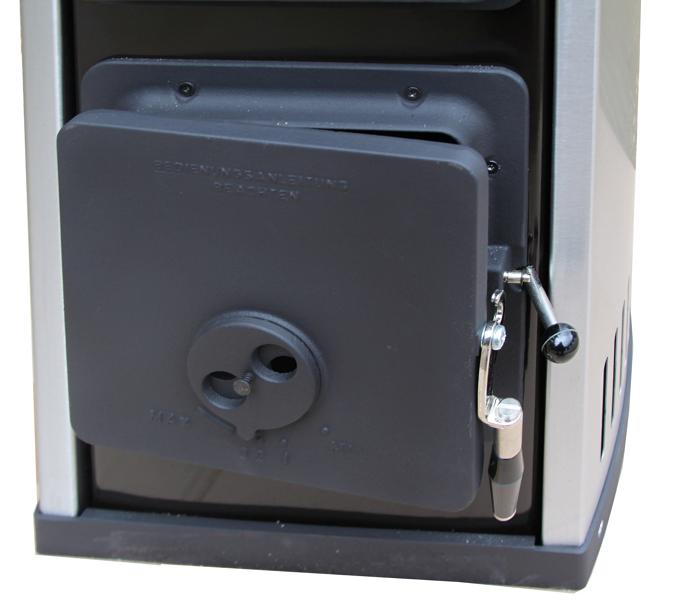Rošt má ovládací táhlo pro vyklepávání popelu. Čištění kamen usnadňují vnitřní litinová dvířka nad popelníkem.