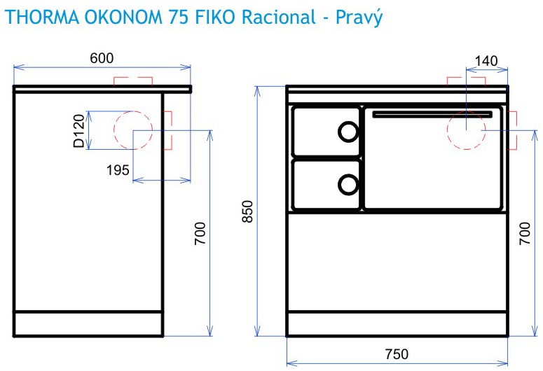 Sporák je napojitelný na komín z boční, zadní a vrchní části. Průměr odkouření je DN120 mm. Vyrábí se v pravém i levém provedení.