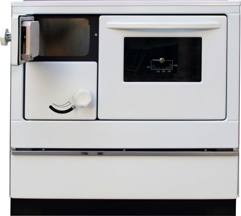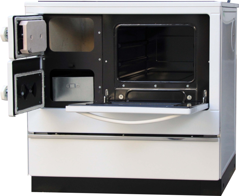 Vedle ohniště je smaltovaná trouba na pečení s dvěma páry nosných žeber na příslušenství. Je uzavíratelná odnímatelnými dvířky, které jsou k obrubě trouby přitlačované