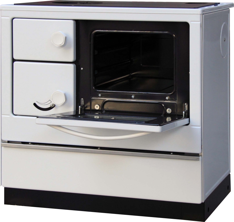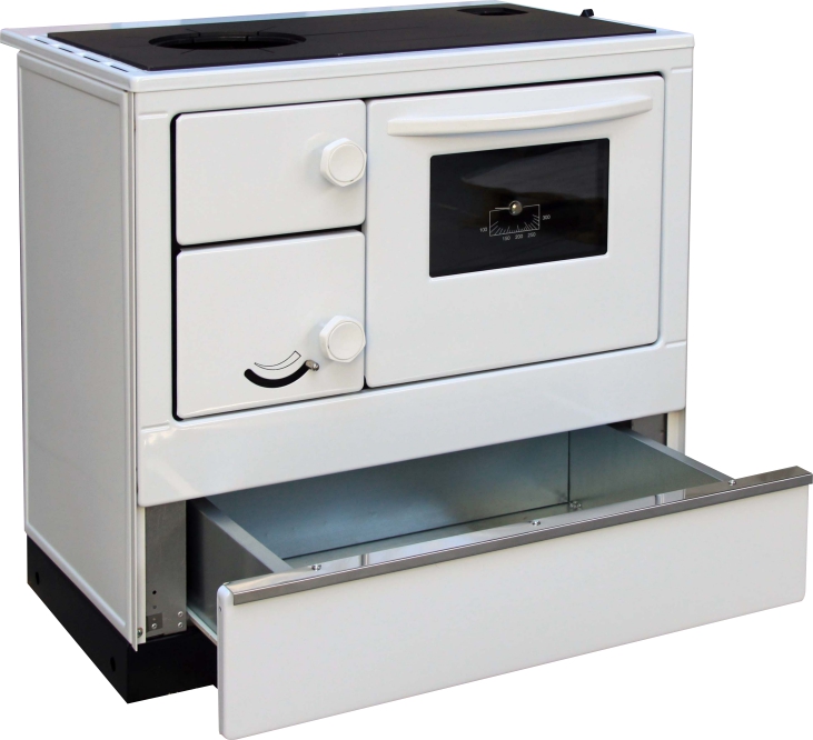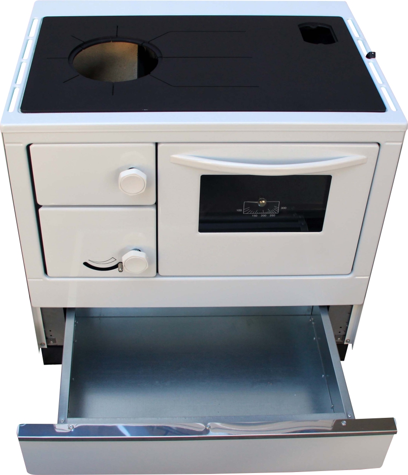 ocelovými pružinami. Pod troubou je otvor na čištění spodní části sporáku, který je zakrytý smaltovaným víkem.