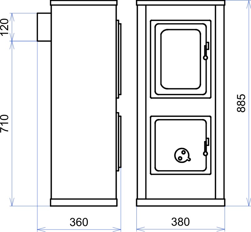 | Bezpečná vzdálenost od hořlavých stavebních konstrukcí a nábytku před dvířky | 800 mm |