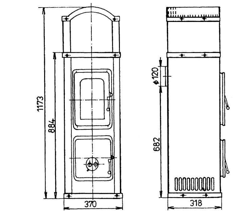 Stáložárná kamna na dřevo a hnědouhelné brikety - Thorma VIGSO. Mohou se používat i jako hlavní zdroj topení pro menší místnosti, například do chat a chalup. Dvouplášťové provedení, stáložárná. Spodek bez nožiček a tedy bez zapadávání prachu. Přisávání vzduchu nad podlahou.