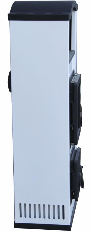 Stáložárná kamna na dřevo a hnědouhelné brikety - Thorma VIGSO. Mohou se používat i jako hlavní zdroj topení pro menší místnosti, například do chat a chalup. Dvouplášťové provedení, stáložárná. Spodek bez nožiček a tedy bez zapadávání prachu. Přisávání vzduchu nad podlahou.
