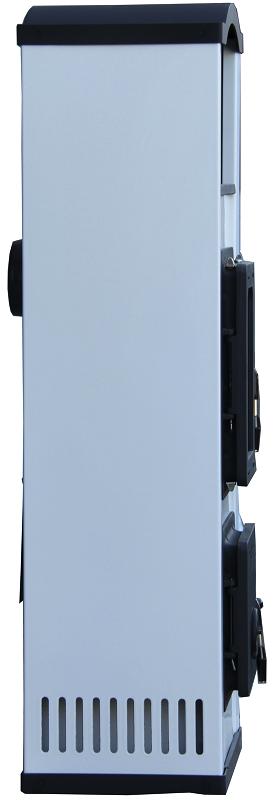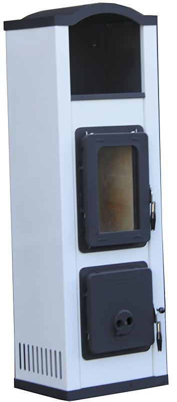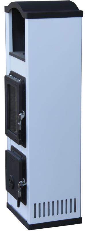 Stáložárná kamna na dřevo a hnědouhelné brikety - Thorma VIGSO. Mohou se používat i jako hlavní zdroj topení pro menší místnosti, například do chat a chalup. Dvouplášťové provedení, stáložárná. Spodek bez nožiček a tedy bez zapadávání prachu. Přisávání vzduchu nad podlahou.